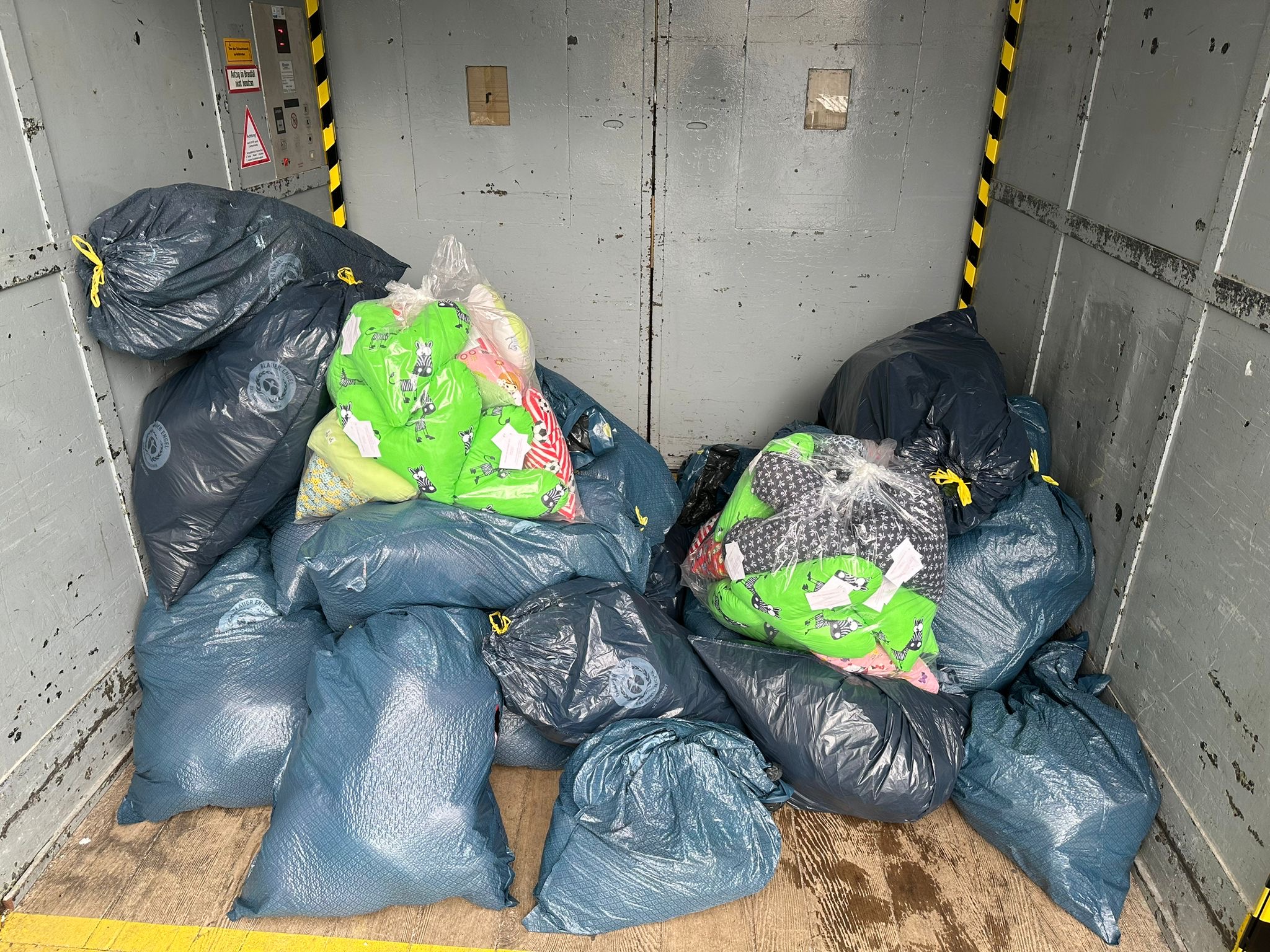 So sieht es aus, wenn unser Cheflogistiker Tom sich mit unseren Freunden der kfd Hückeswagen trifft und von ihnen 360 Herzkissen und 230 Drainagetaschen bekommt. Tom musste sie anschließend noch alle in den Lagerraum bringen und verräumen. Das Foto wurde übrigens im Lastenaufzug, der zu unserem Lager führt, aufgenommen, und nicht, wie schon vermutet, in einem Entsorgungscontainer. ;-)